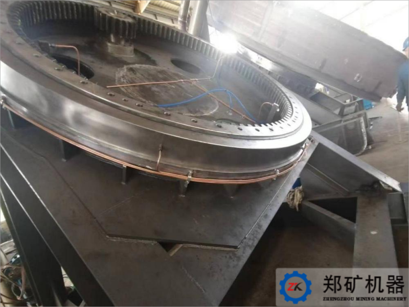 我司簽訂的湖北客戶120萬噸/年半水磷石膏綜合利用項目中圓盤造球機設備,其傳動部分不同于同系列一般造球機設備,利用回轉(zhuǎn)支撐裝置代替常規(guī)的齒輪組嚙合傳動,其安裝更簡單方便、易于操作封閉式的殼體,更容易維修,安全性、可靠性較高結構更加緊湊,更耐用,動力源可選?;剞D(zhuǎn)支承是介于機架與上部回轉(zhuǎn)盤體間作相對回轉(zhuǎn)運動的傳力原件,用于支承上車體質(zhì)量和承受工作載荷,共內(nèi)座圈鏈接下機體,外座圈鏈接上盤體,內(nèi)座圈上的內(nèi)齒圈與回轉(zhuǎn)小齒輪嚙合。當回轉(zhuǎn)齒輪轉(zhuǎn)動時,通過小齒輪帶動上盤體回轉(zhuǎn)。
